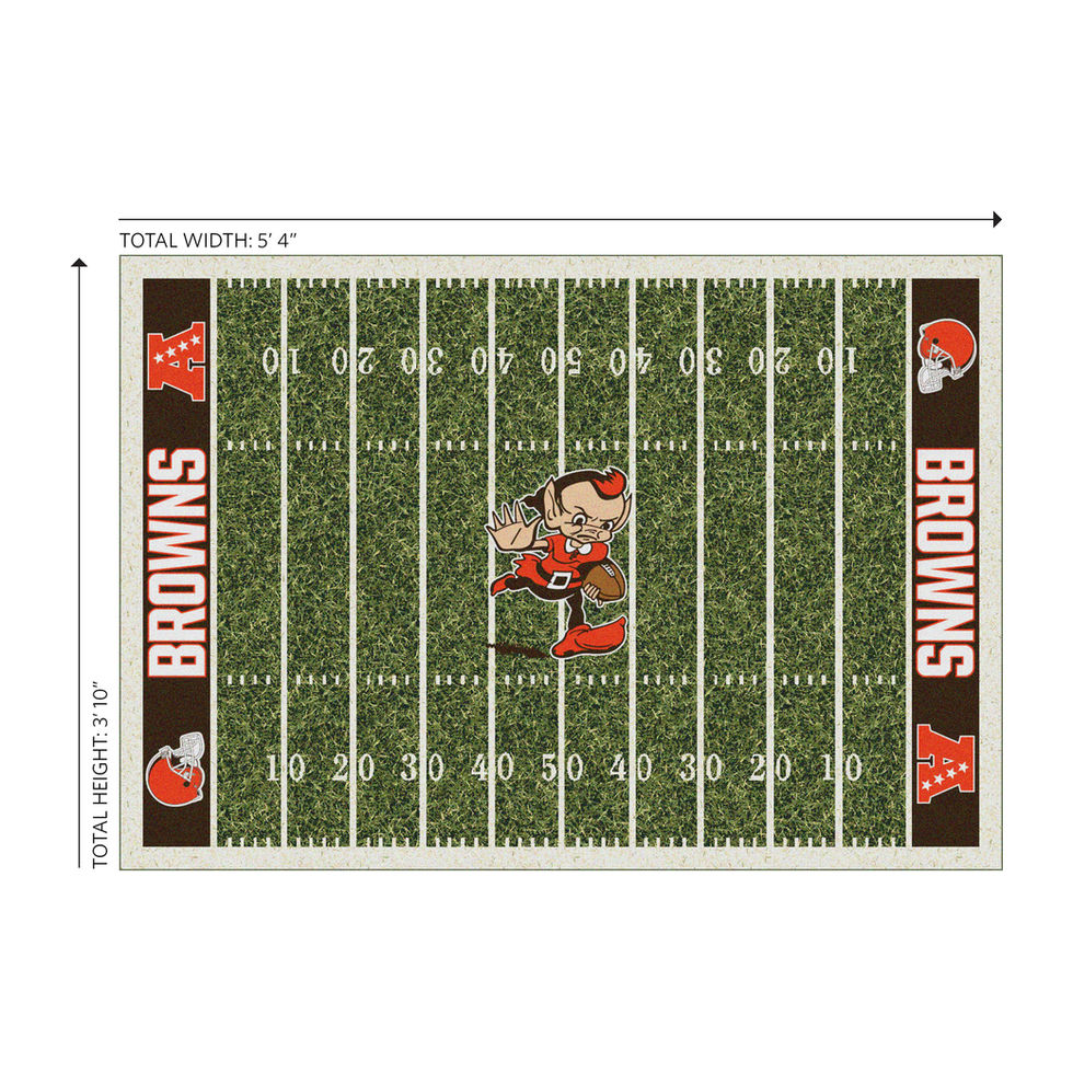 Show your team spirit with this officially licensed area rug, styled to resemble a football field! Made with premium Milliken Certified WearOn® nylon. This rug is fade-resistant and protects against stains and soil with Stainsmart® chemistry. Endura-Loc™ high-performance backing helps ensure the rug always lies flat, and serged edges give your rug the quality that your home and team deserve.