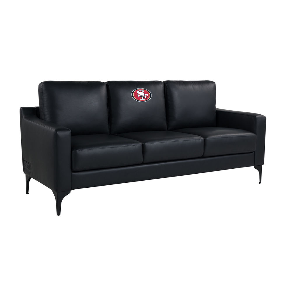 The Game Day Sofa is an excellent addition to your game room, office, or living room. This sofa is not only extremely comfortable but also designed to withstand years of use. It comes with a meticulously embroidered logo on the center cushion, and an additional cushion without a logo is also included, providing you with the option to switch them as per your preference. This sofa is not just a piece of furniture; it's a statement.