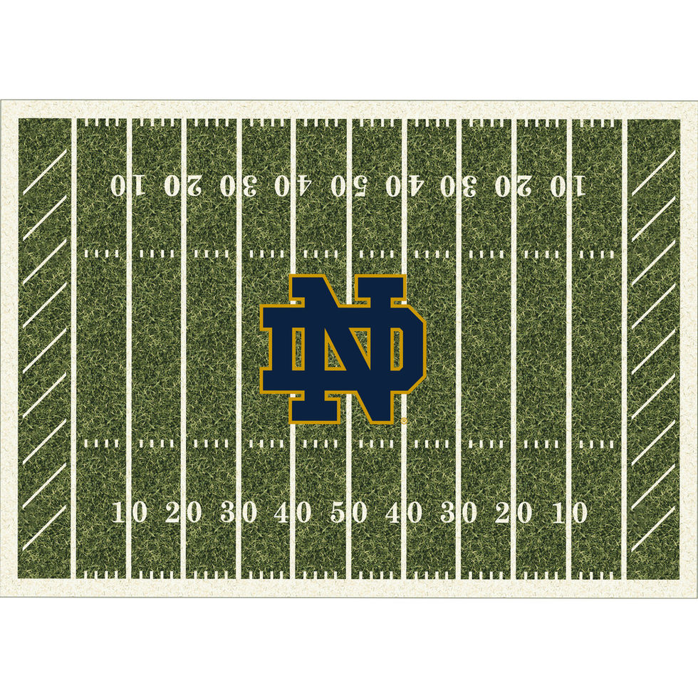 Show your team spirit with this officially licensed University of Notre Dame area rug, styled to resemble a football field! Made with premium Milliken Certified WearOn® nylon. This rug is fade-resistant and protects against stains and soil with Stainsmart® chemistry. Endura-Loc™ high-performance backing helps ensure the rug always lies flat, and serged edges give your rug the quality that your home and team deserve.