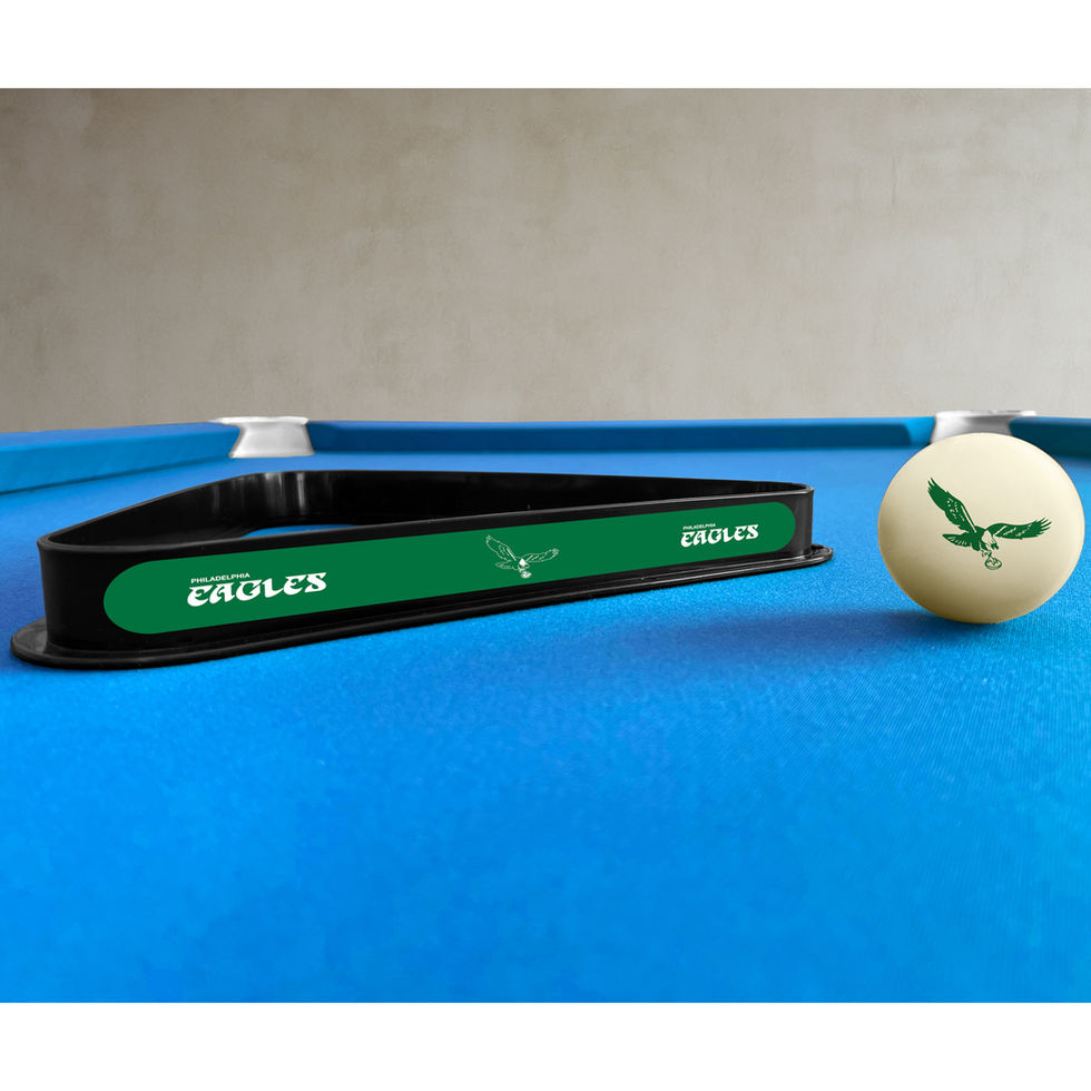 Do you enjoy playing pool and cheering for your favorite team? If so, you'll love our Vintage Philadelphia Eagles Billiards Triangle and Cue Ball Combo. This set includes a high-quality triangle and a cue ball featuring your favorite team's logo, allowing you to showcase your team spirit every time you play. Whether you're hosting a game night with friends, practicing your skills, or watching the game, this combo will add fun and flair to your pool table.