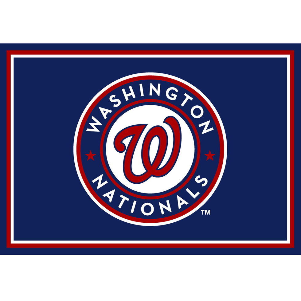 Show your team spirit with this officially licensed Washington Nationals area rug, measuring 3' x 4' and featuring your favorite team logo! Made with Milliken WearOn® fiber, this rug is fade-resistant and designed to combat stains and soiling using Stainsmart® technology.